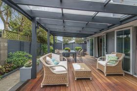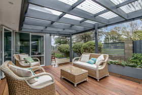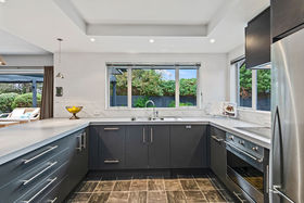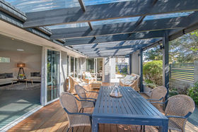 Four double bedrooms (could be five) with the upstairs master having an ensuite, walk in robe and French doors to a balcony. The family bathroom features a spa bath and separate toilet plus there is a third toilet adjoining the laundry. Generous open plan kitchen, dining and family living with a separate sitting room (could be used as a fifth bedroom). Both these living areas flow with ease to the sheltered expansive covered deck areas that are perfectly positioned to catch the sun. Outdoor blinds add to the versatility and living space in all weathers.